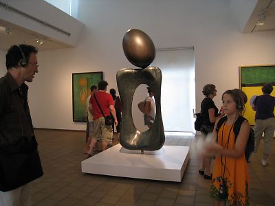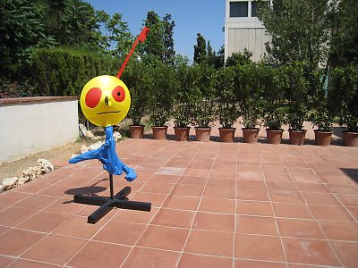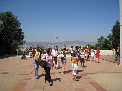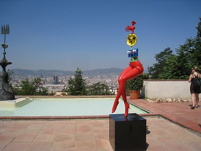 このバスはスペイン広場も突っ切って、何と ミロ美術館の前まで行ってくれる。 1時過ぎにミロ美術館に着いた。 ミロは現代絵画、私にはかなり難解だ。 夢の中で見たような印象。 その意味では眺めていて心地が良かったが。 バルセロナを見下ろす庭のオブジェが開放的だ。 ショップでお土産を探したがなかなかこれといったものがない。 その上高い。