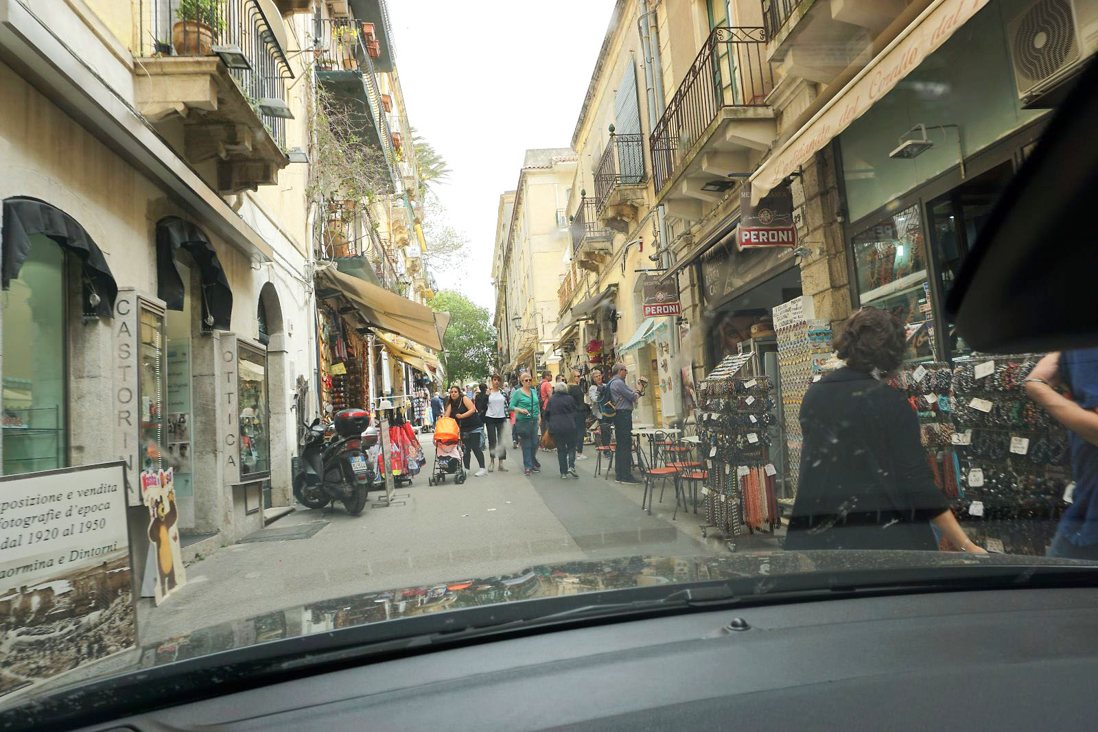 SS640 → A19 → Catania → E45 → Taormina(ZTL内注意) 内陸の SS640 をひたすら走った。 車内は姫のカラオケ車になっていた(笑。 途中で道を間違え1時間ほど時間を無駄にした。